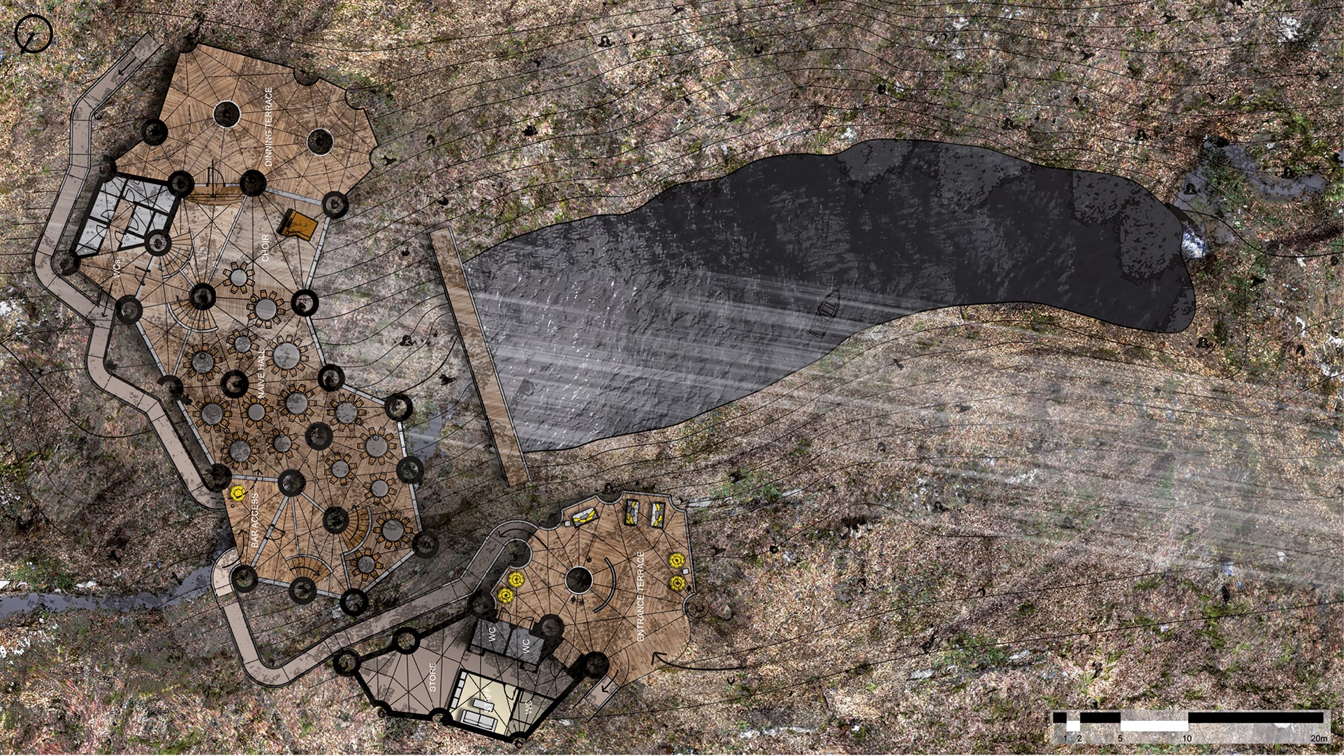 A ground floor plan indicating general arrangement and key services/facilities.