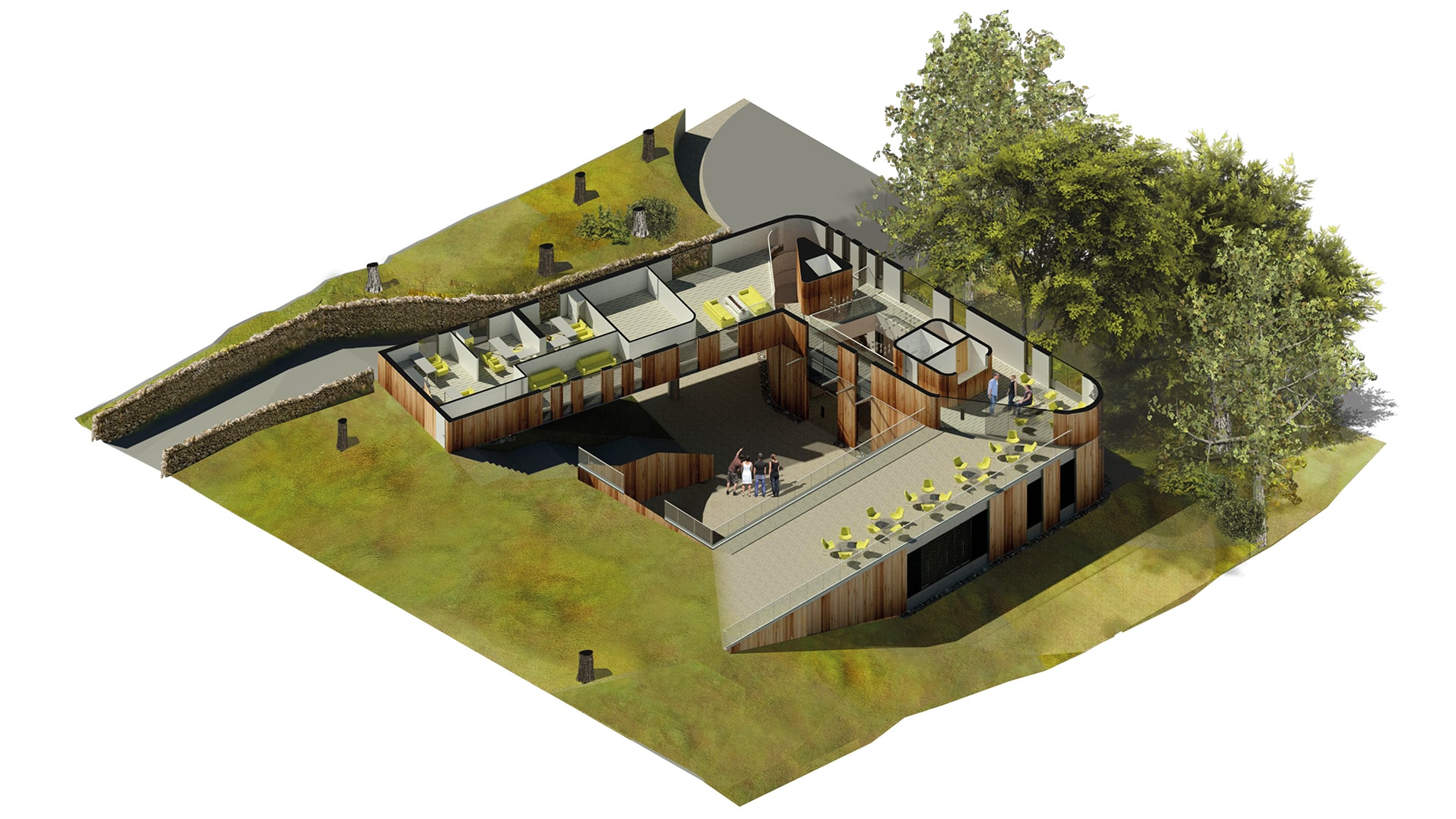 A sectional isometric view of the scheme. Created using Revit and Photoshop.